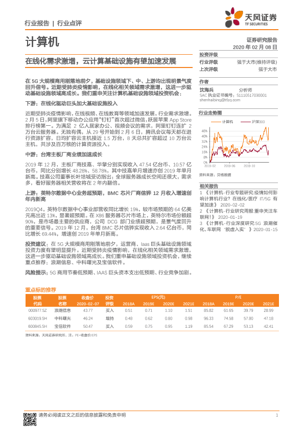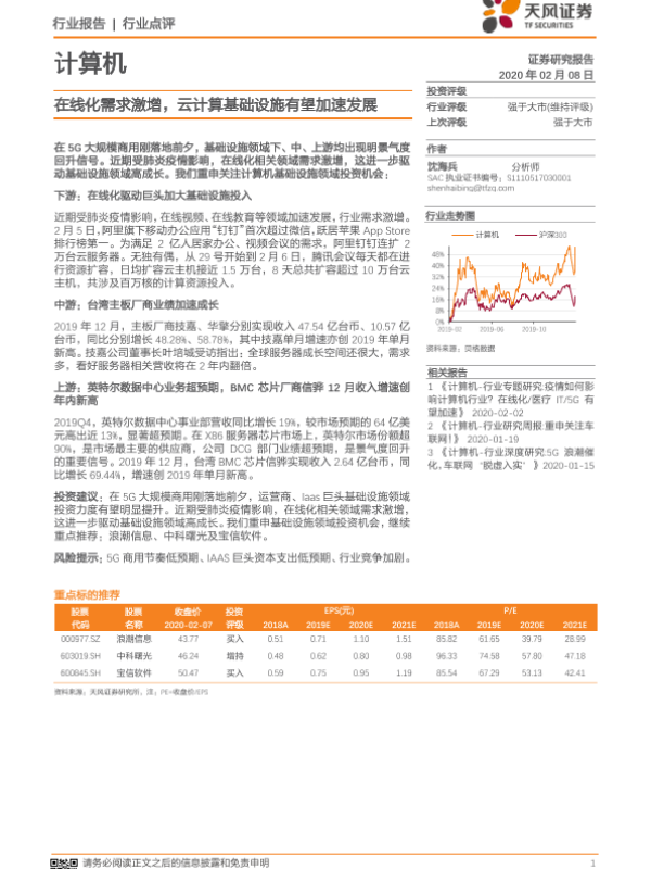 【天风证券】【20200208】计算机:在线化需求激增,云计算基础设施有望加速发展-2页