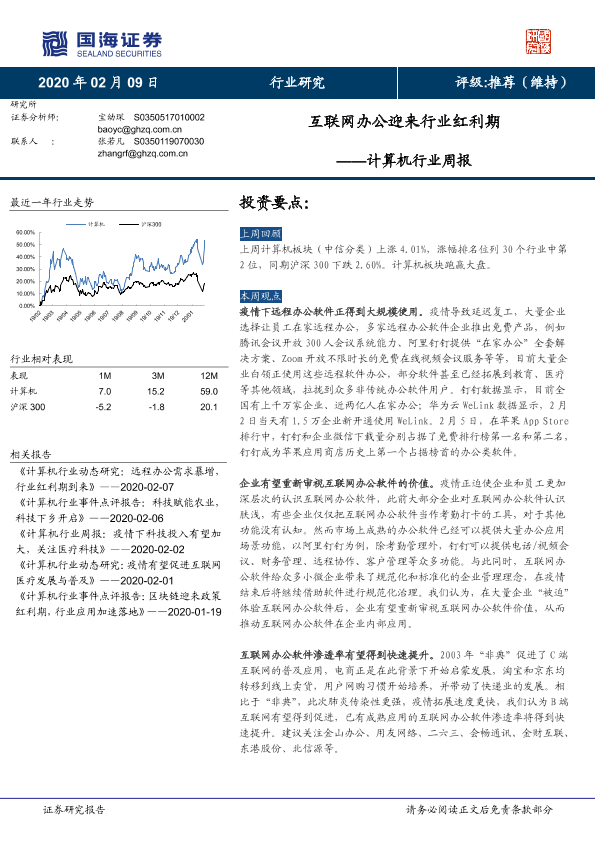 【国海证券】【20200209】计算机行业周报:互联网办公迎来行业红利期-13页