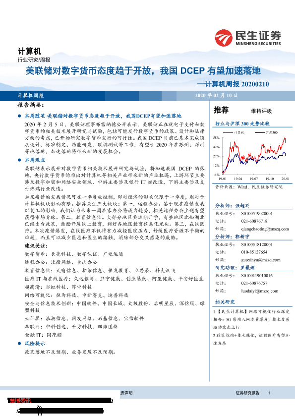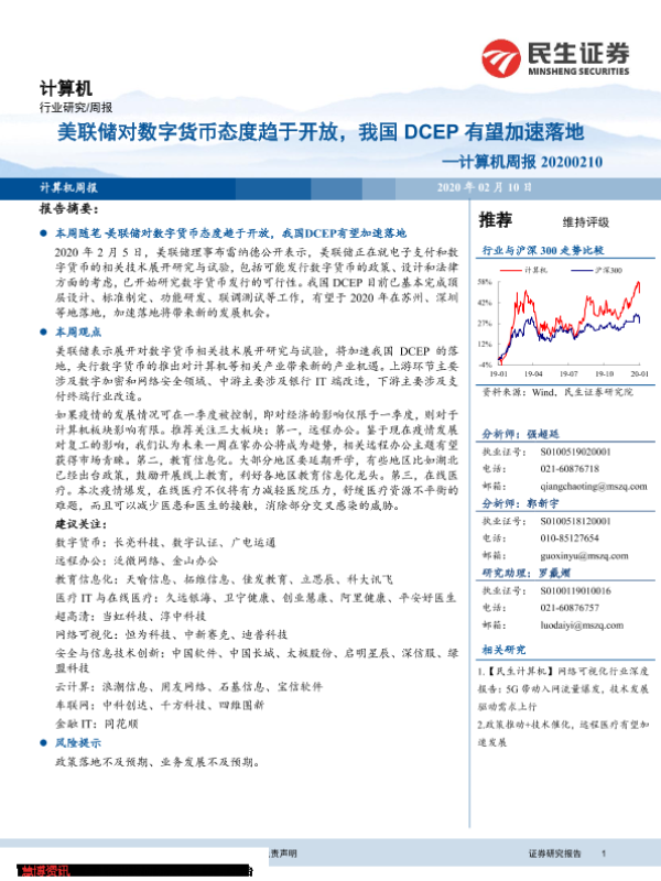 【民生证券】【20200210】计算机周报:美联储对数字货币态度趋于开放,我国DCEP有望加速落地-15页