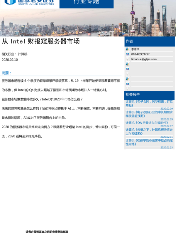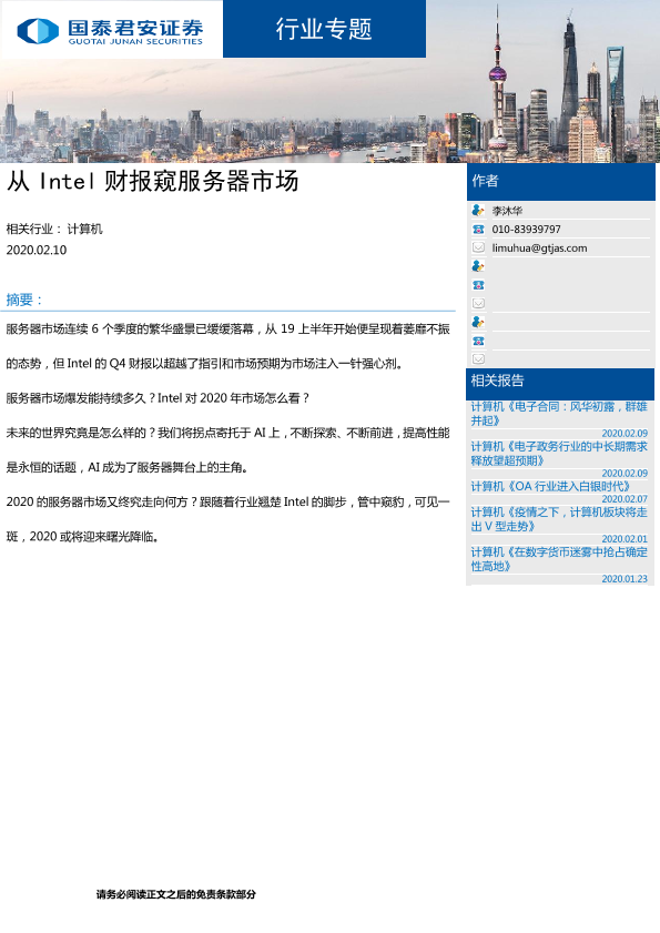 【国泰君安证券】【20200210】从Intel财报窥服务器市场-6页