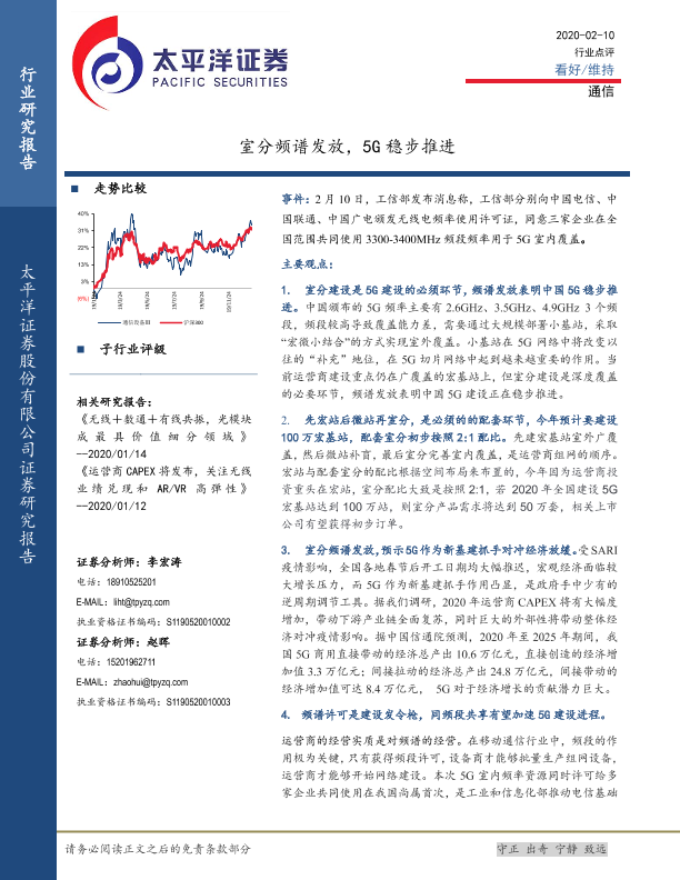 【太平洋证券】【20200210】通信:室分频谱发放,5G稳步推进-4页