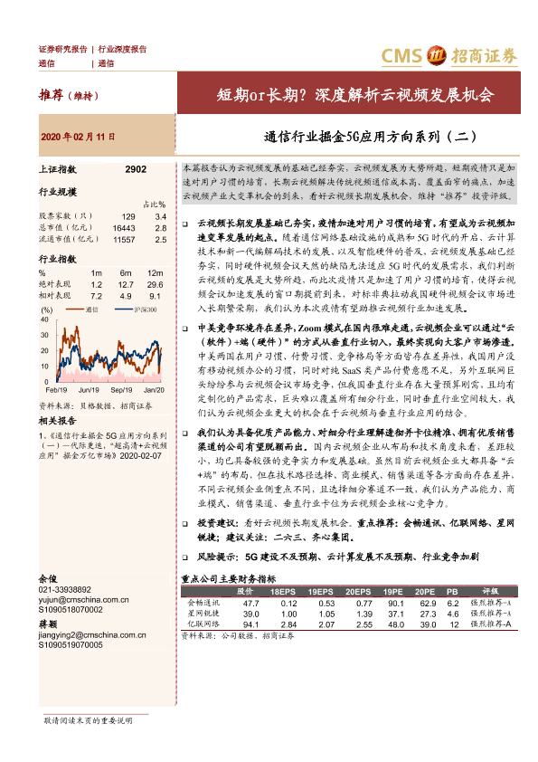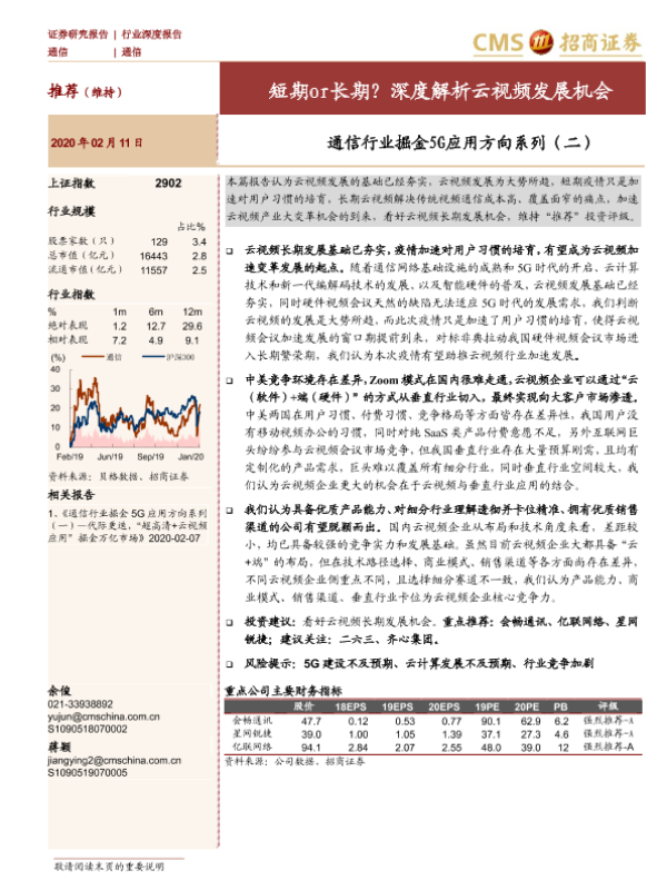 5G应用 云视频 投资分析 疫情加速 通信行业