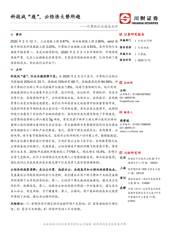 【川财证券】【20200212】计算机行业动态点评:科技战“疫”,云经济大势所趋-2页