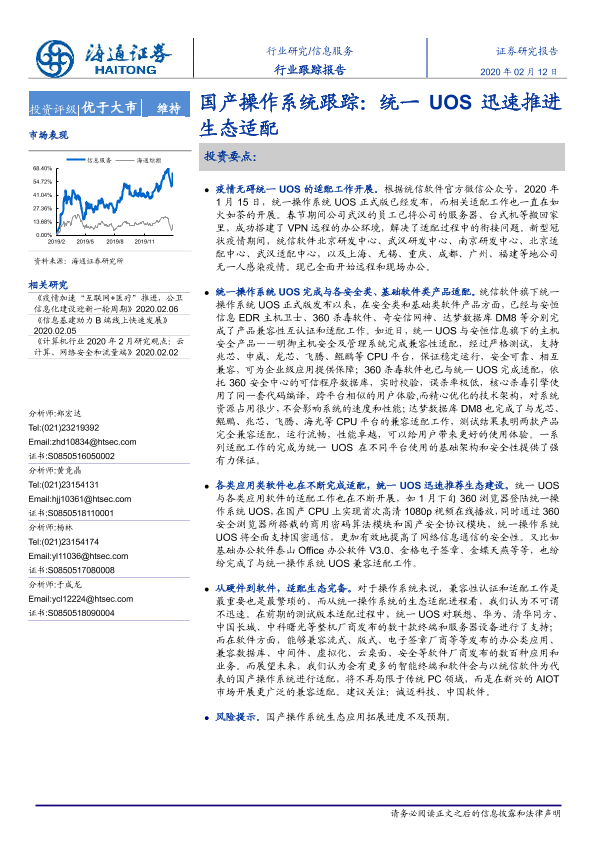 【海通证券】【20200212】信息服务行业跟踪报告:国产操作系统跟踪:统一UOS迅速推进生态适配-2页