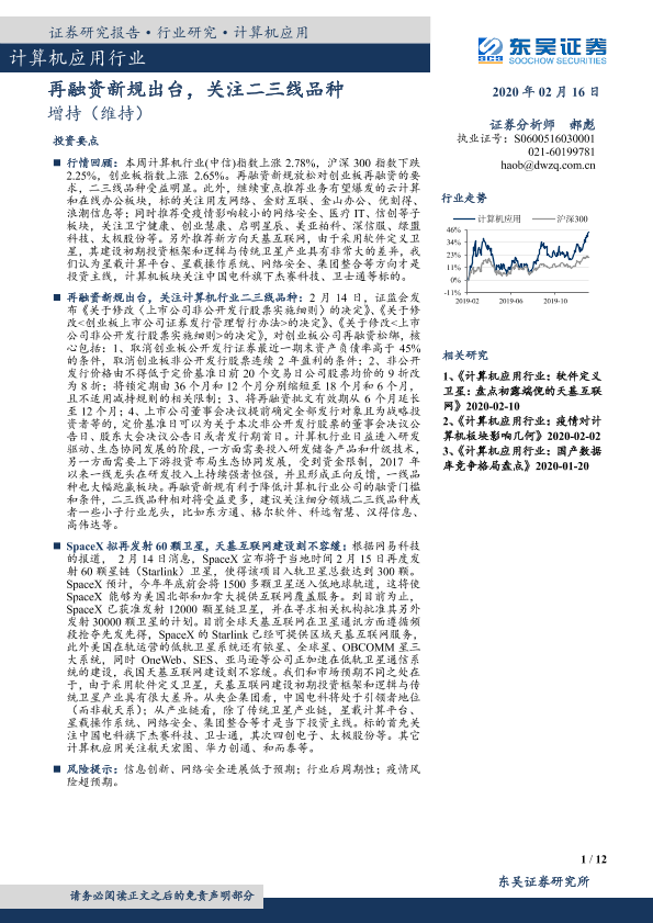【东吴证券】【20200216】计算机应用行业周报跟踪:再融资新规出台,关注二三线品种-12页