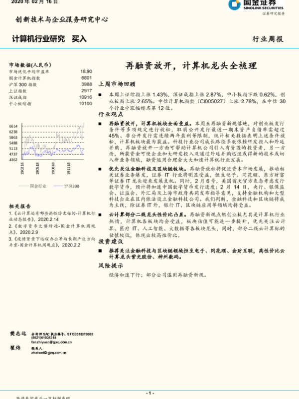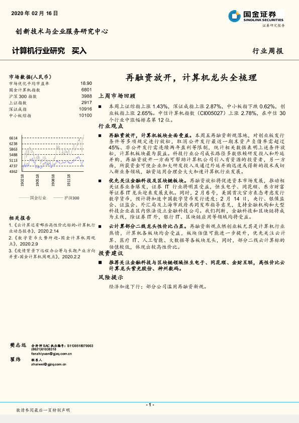 【国金证券】【20200216】计算机行业周报:再融资放开,计算机龙头全梳理-11页