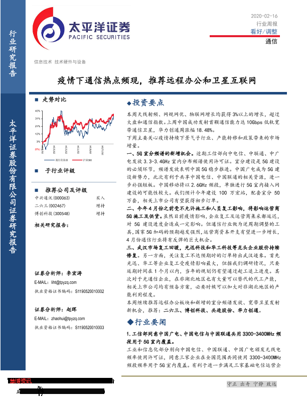 【太平洋证券】【20200216】疫情下通信热点频现,推荐远程办公和卫星互联网-17页