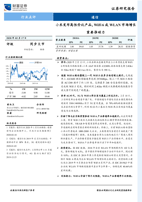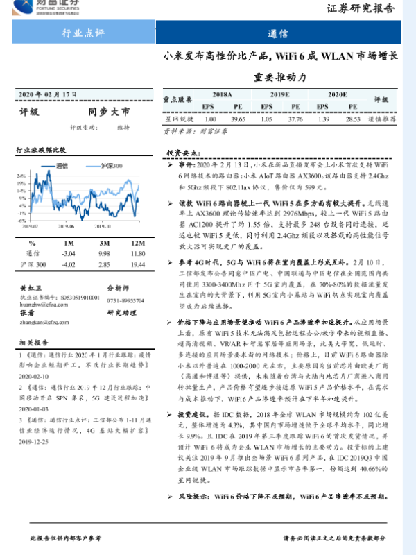 【财信证券】【20200217】小米发布高性价比产品,WiFi6成WLAN市场增长重要推动力-2页