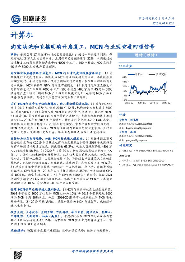 【国盛证券】【20200217】淘宝物流和直播明确开启复工,MCN行业现重要回暖信号-2页