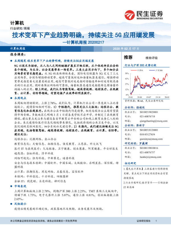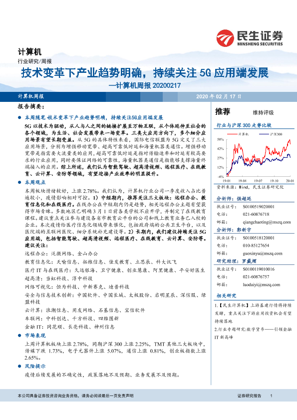 【民生证券】【20200217】20200217-民生证券-计算机周报:技术变革下产业趋势明确,持续关注5G应用端发展-17页