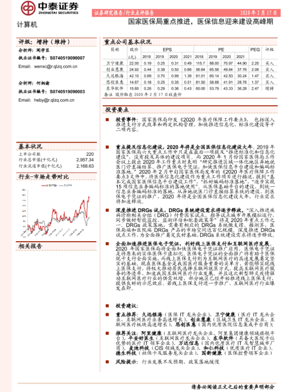 【中泰证券】【20200217】20200217-中泰证券-计算机行业点评报告:国家医保局重点推进,医保信息迎来建设高峰期-2页