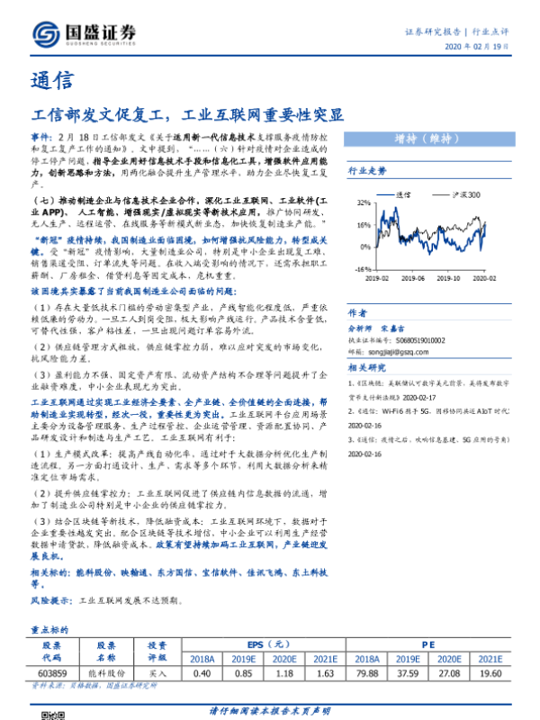 【国盛证券】【20200219】通信:工信部发文促复工,工业互联网重要性突显-2页