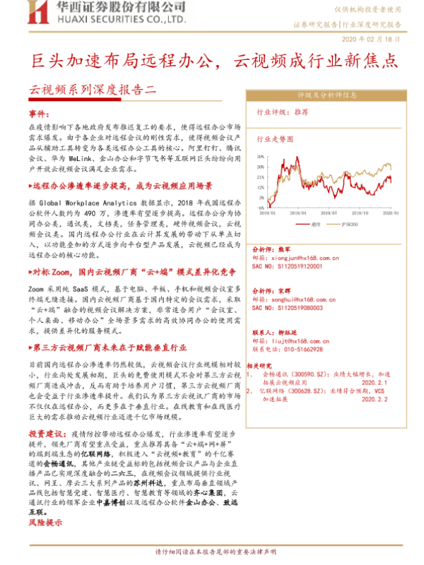 【华西证券】【20200218】云视频系列深度报告二:巨头加速布局远程办公,云视频成行业新焦点-26页