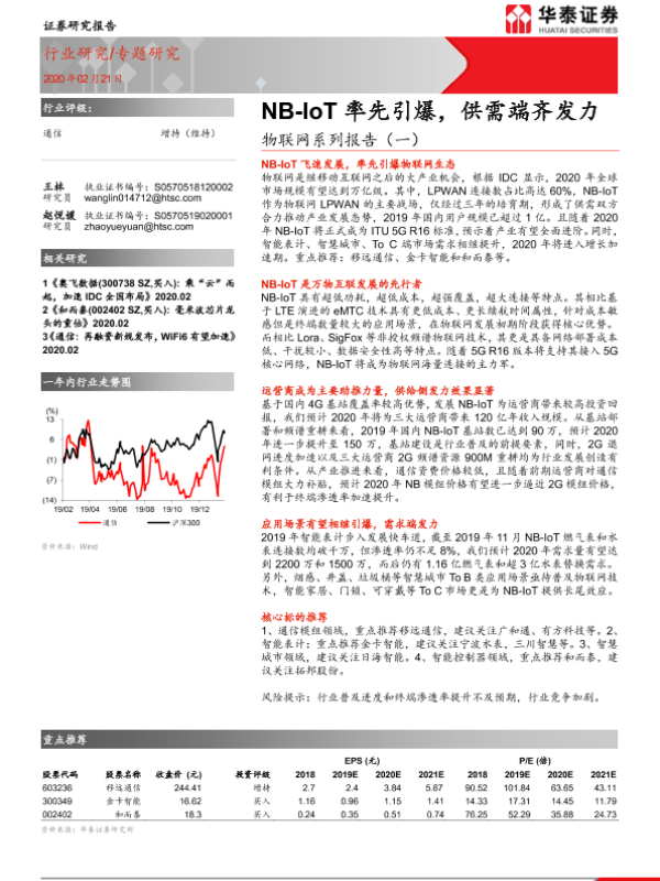 【华泰证券】【20200221】物联网系列报告(一):NB-IoT率先引爆,供需端齐发力-27页