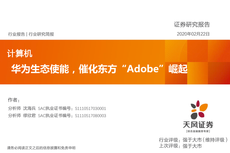 【天风证券】【20200222】华为生态使能,催化东方“Adobe”崛起-20页