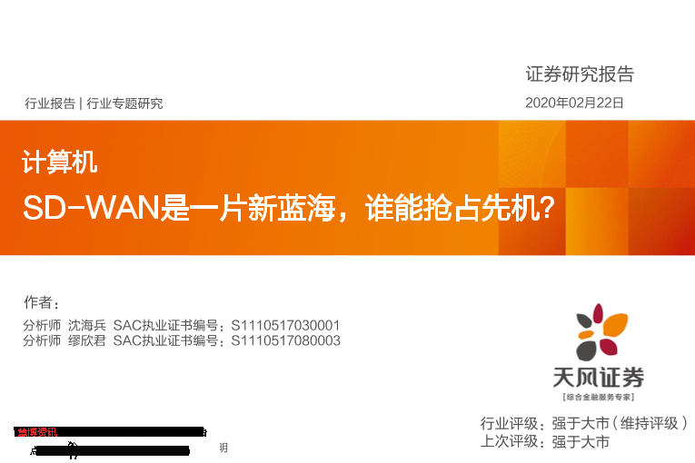 【天风证券】【20200222】20200222-天风证券-计算机行业专题研究:SD-WAN是一片新蓝海,谁能抢占先机?-25页