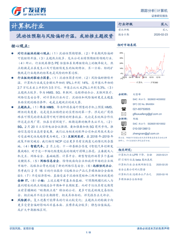 【广发证券】【20200223】计算机行业跟踪分析:流动性预期与风险偏好升温,或助推主题投资-8页