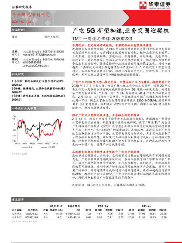 【华泰证券】【20200223】TMT一周谈之传媒:广电5G有望加速,业务突围迎契机-8页