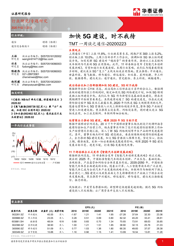 【华泰证券】【20200223】TMT一周谈之通信:加快5G建设,时不我待-11页