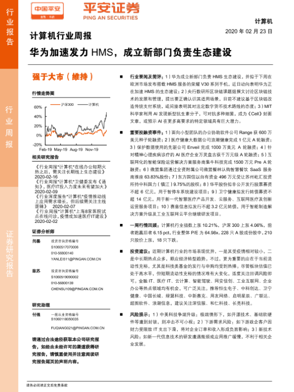 【平安证券】【20200223】计算机行业周报:华为加速发力HMS,成立新部门负责生态建设-5页