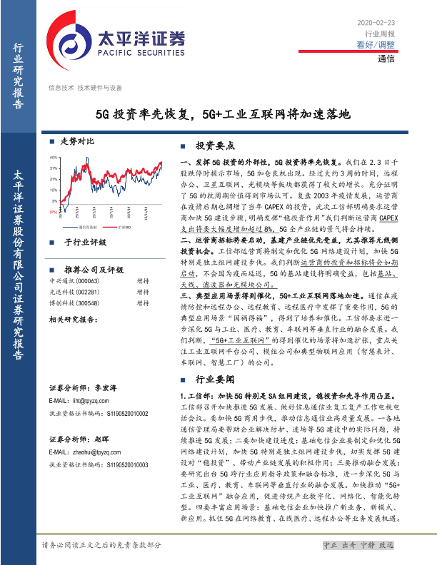 【太平洋证券】【20200223】通信行业周报:5G投资率先恢复,5G+工业互联网将加速落地-17页