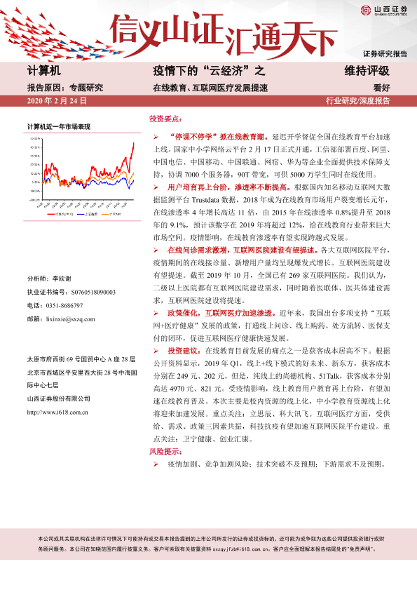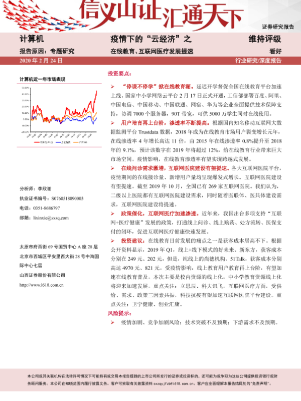 【山西证券】【20200224】疫情下的“云经济”之在线教育、互联网医疗发展提速-16页