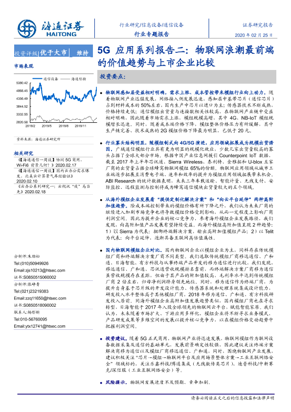 【海通证券】【20200225】5G应用系列报告二:物联网浪潮最前端的价值趋势与上市企业比较-38页