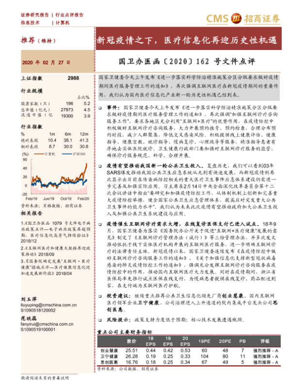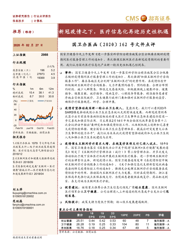 【海通证券】【20200227】新冠疫情之下,医疗信息化再迎历史性机遇-4页