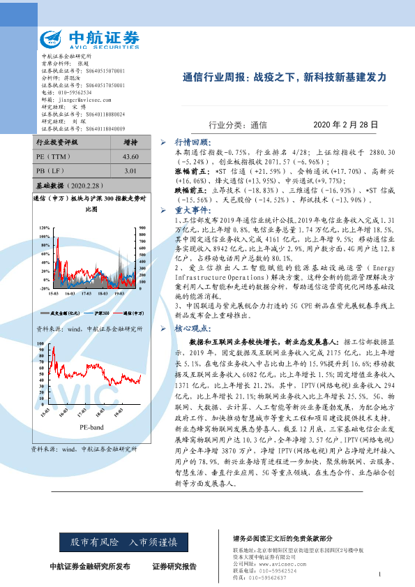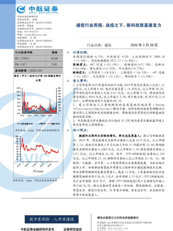 【中航证券】【20200228】通信行业周报:战疫之下,新科技新基建发力-4页