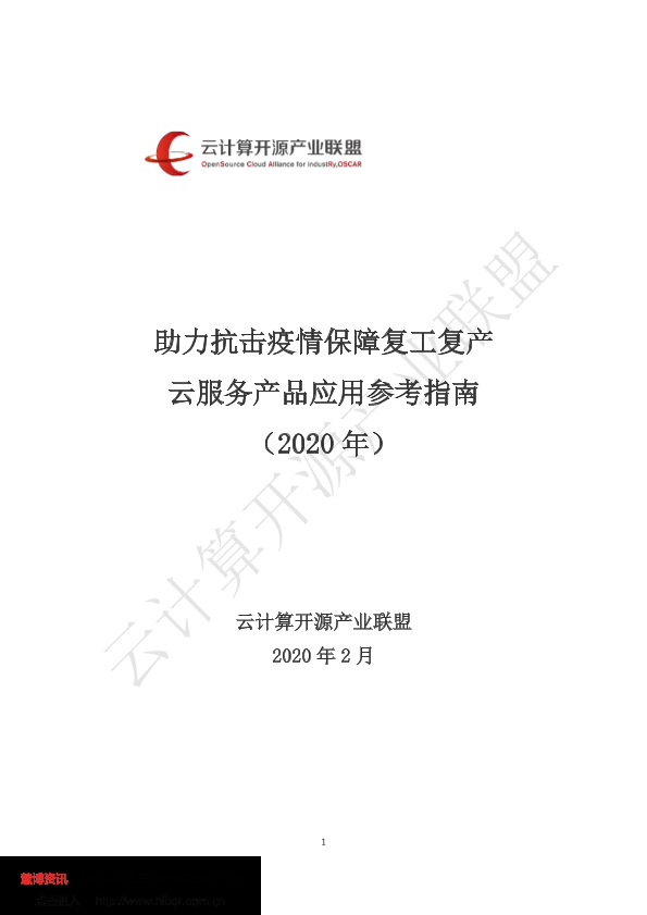 【云计算开源产业联盟】【202002】助力抗击疫情保障复工复产云服务产品应用参考指南-128页