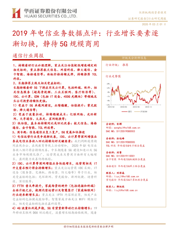 【华西证券】【20200301】2019年电信业务数据点评:行业增长要素逐渐切换,静待5G规模商用-9页