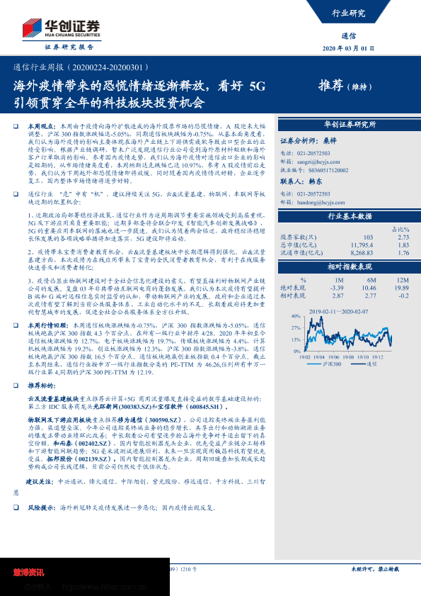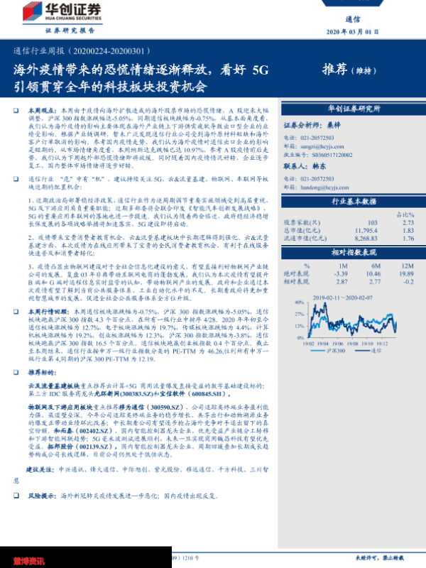 【华创证券】【20200301】通信行业周报:海外疫情带来的恐慌情绪逐渐释放,看好5G引领贯穿全年的科技板块投资机会-22页