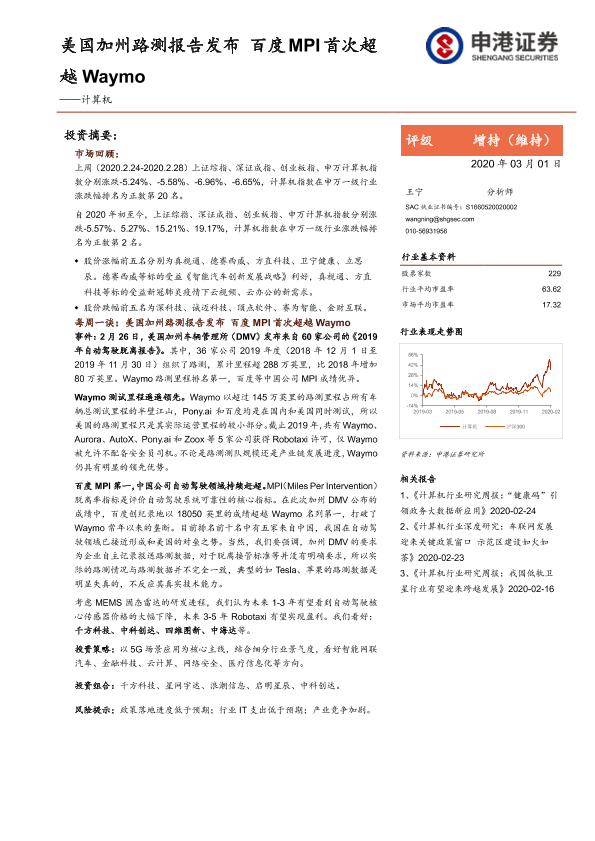 【申港证券】【20200301】美国加州路测报告发布 百度MPI首次超越Waymo-14页
