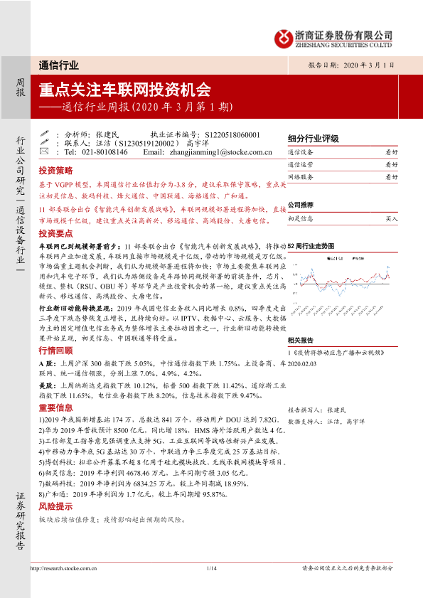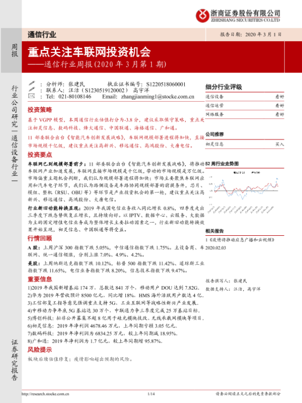 【浙商证券】【20200301】通信行业周报(2020年3月第1期):重点关注车联网投资机会-14页