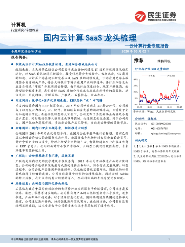 【民生证券】【20200302】国内云计算SaaS龙头梳理-65页