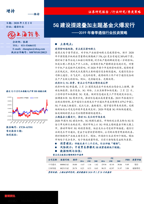 【上海证券】【20200302】2019年春季通信行业投资策略:5G建设提速叠加主题基金火爆发行-14页