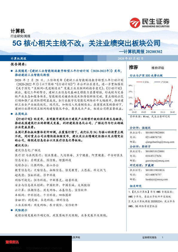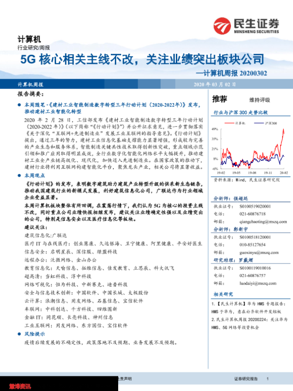 【民生证券】【20200302】20200302-民生证券-计算机周报:5G核心相关主线不改,关注业绩突出板块公司-15页