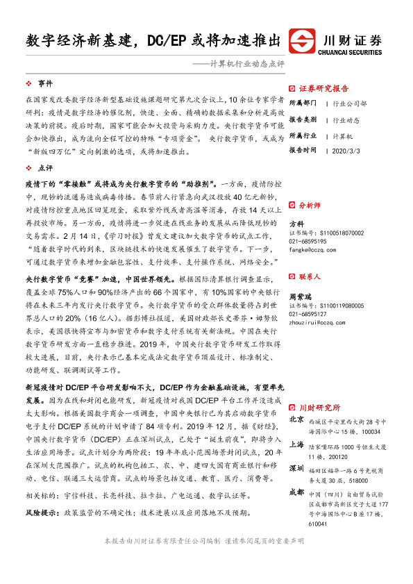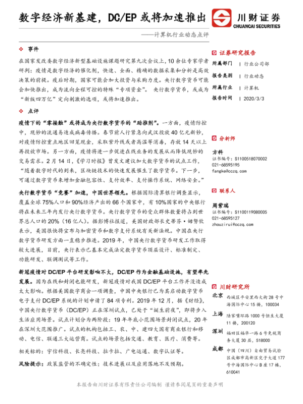 【川财证券】【20200303】计算机行业动态点评:数字经济新基建,DC/EP或将加速推出-2页
