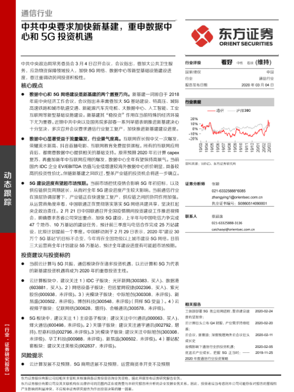 【东方证券】【20200304】通信行业:中共中央要求加快新基建,重申数据中心和5G投资机遇-3页