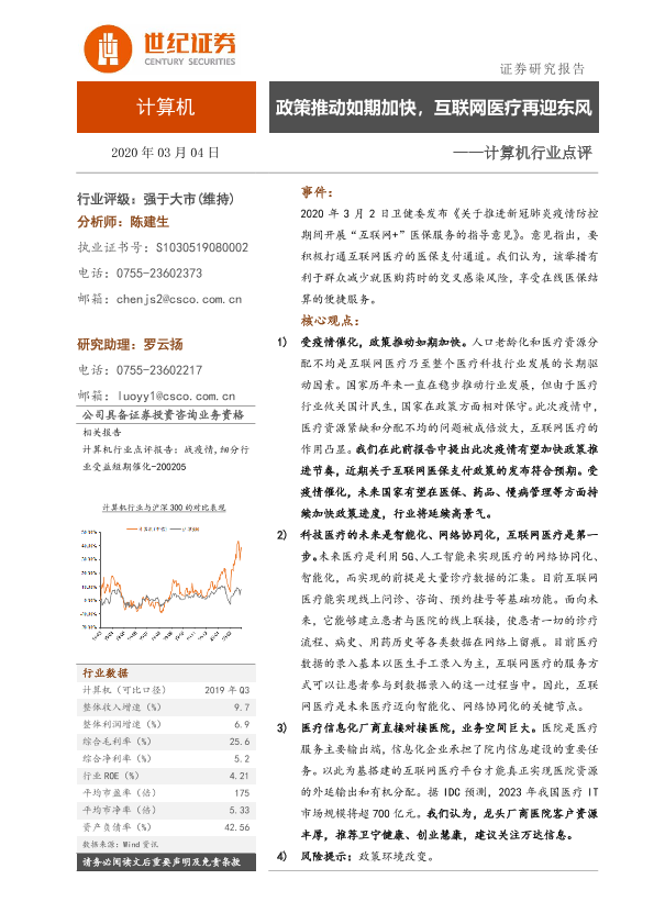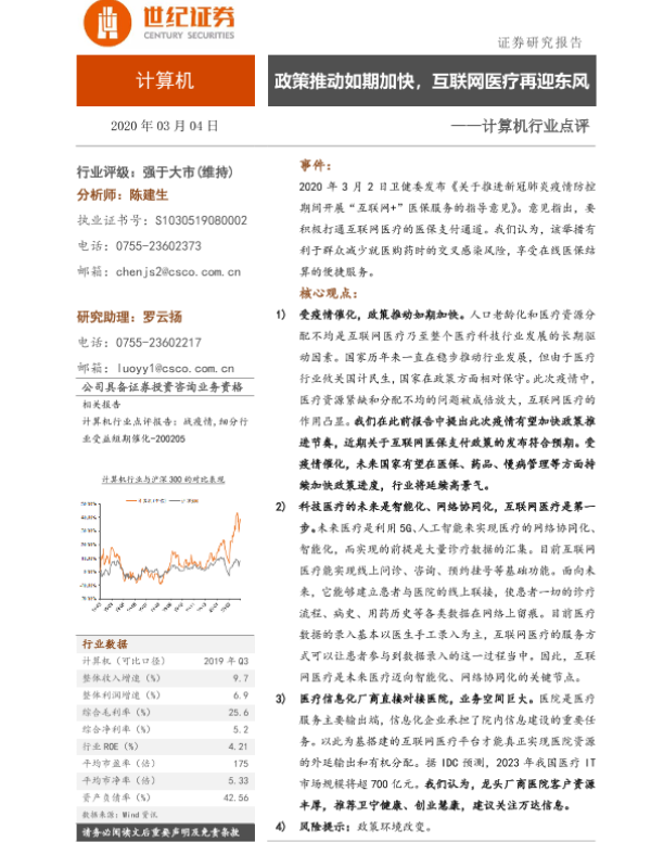 【世纪证券】【20200304】计算机行业点评:政策推动如期加快,互联网医疗再迎东风-11页