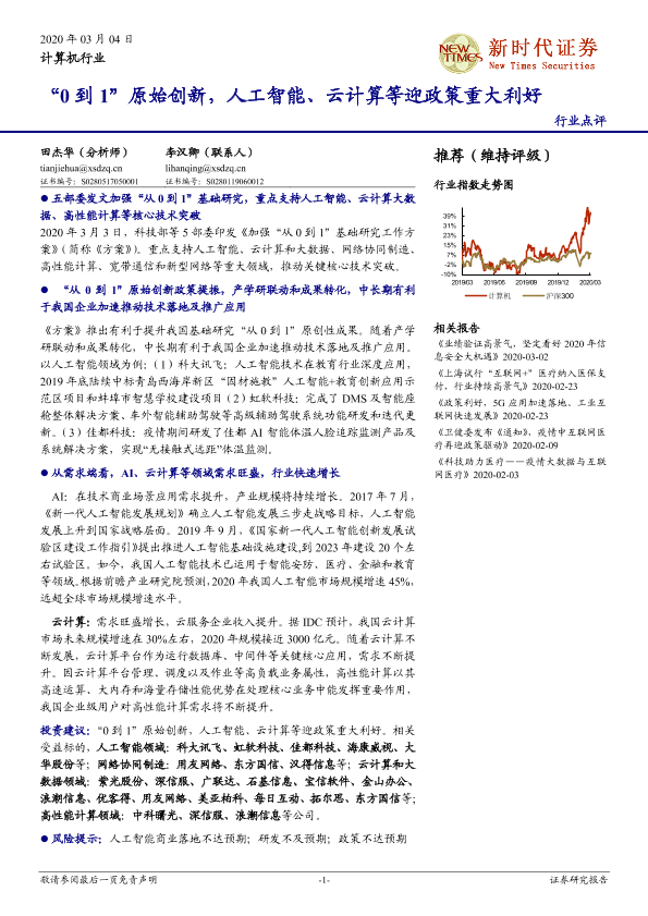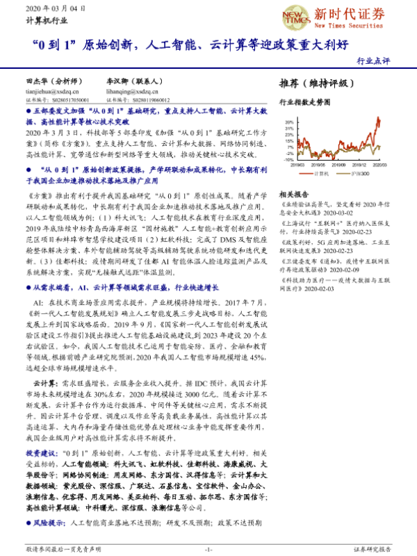 【新时代证券】【20200304】计算机行业:“0到1”原始创新,人工智能、云计算等迎政策重大利好-3页