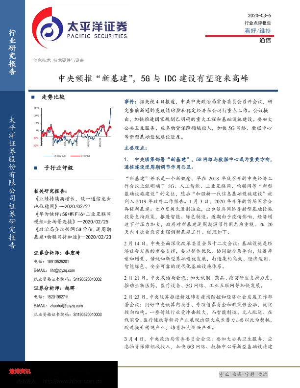 【太平洋证券】【20200305】中央频推“新基建”,5G与IDC建设有望迎来高峰-7页