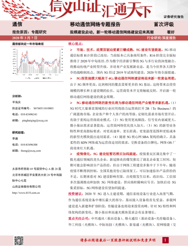 【山西证券】【20200307】移动通信网络专题报告:规模建设启动,新一轮移动通信网络建设迎来高潮-37页