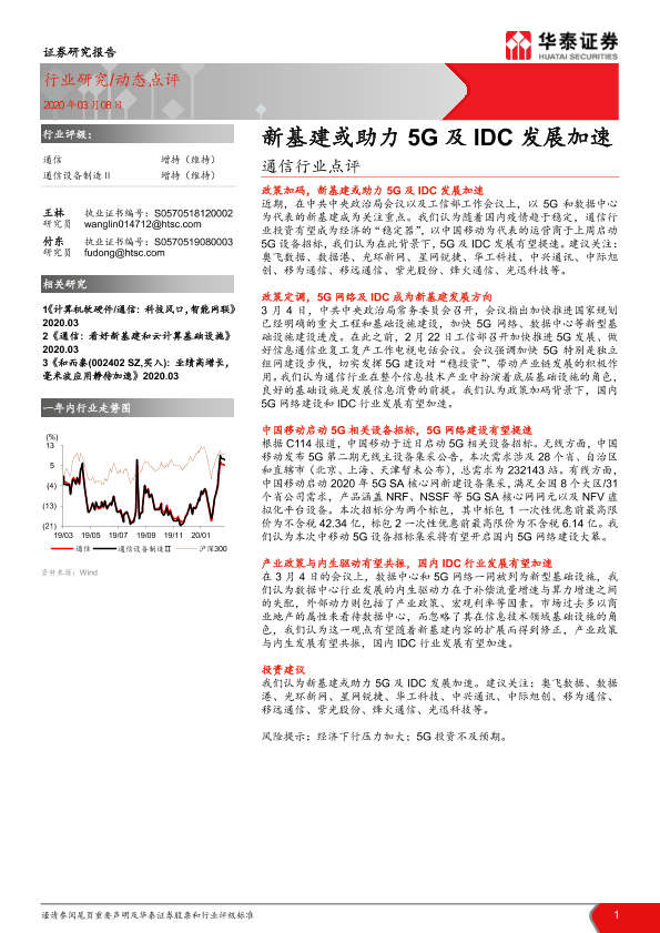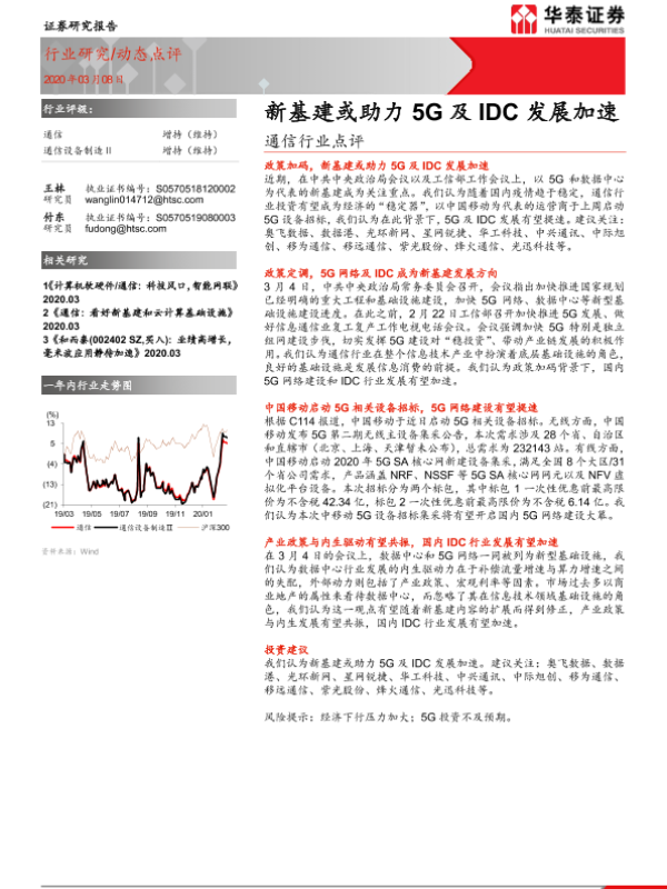 【华泰证券】【20200308】通信行业点评:新基建或助力5G及IDC发展加速-2页