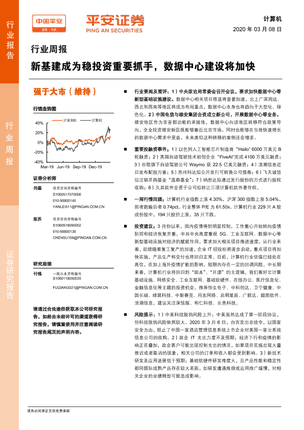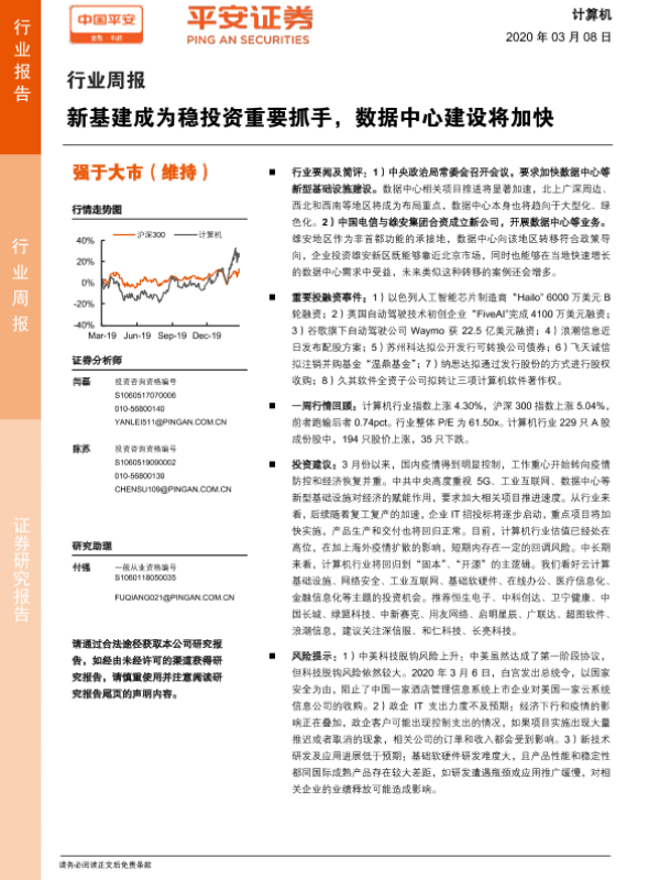 【平安证券】【20200308】计算机行业周报:新基建成为稳投资重要抓手,数据中心建设将加快-5页