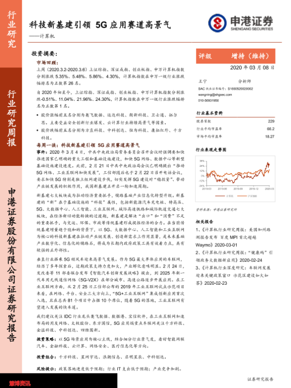 【申港证券】【20200308】20200308-申港证券-计算机行业研究周报:科技新基建引领5G应用赛道高景气-10页