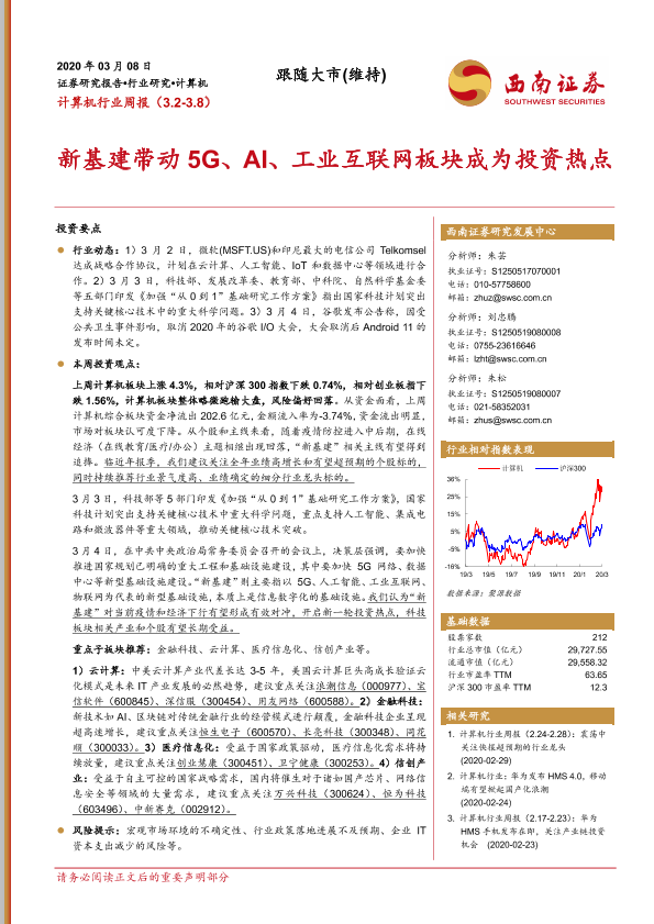 【西南证券】【20200308】20200308-西南证券-计算机行业周报:新基建带动5G、AI、工业互联网板块成为投资热点-16页