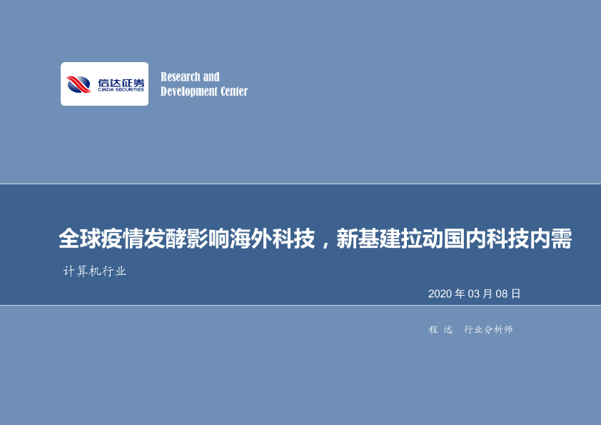 【信达证券】【20200308】20200308-信达证券-计算机行业专题研究:全球疫情发酵影响海外科技,新基建拉动国内科技内需-16页
