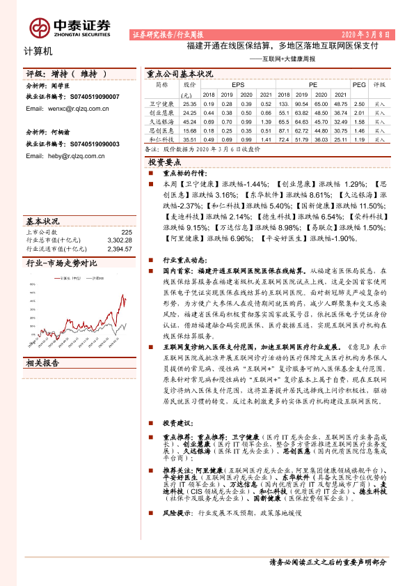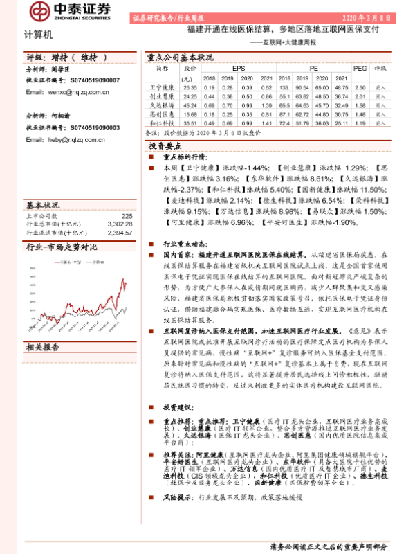 【中泰证券】【20200308】互联网+大健康周报:福建开通在线医保结算,多地区落地互联网医保支付-12页