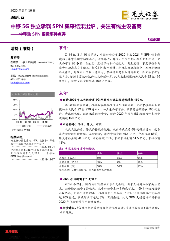 【光大证券】【20200310】通信行业:中移动SPN招标事件点评-中移5G独立承载SPN集采结果出炉,关注有线主设备商-3页